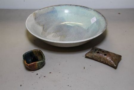 964 Oliver Boyd Pottery Bowl & Two Pottery Flower Frogs