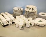 Consisting of large 12 1/2" dia. platter, twenty eight dinner plates, twenty eight salad plates, twenty eight cereal bowls, thirty cups & salt/pepper Consisting of large 12 1/2" dia. platter, twenty eight dinner plates, twenty eight salad plates, twenty eight cereal bowls, thirty cups & salt/pepper