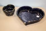 488 Two Ceramic Heart Shaped Spongeware Pans