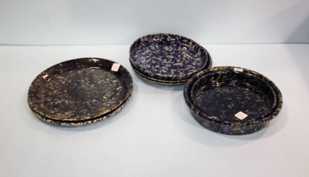 Two spongeware chargers, two plates & three pie plates Two spongeware chargers, two plates & three pie plates