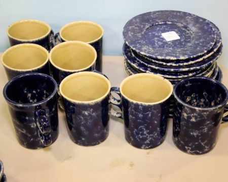 498 Eight Spongeware Mugs & Twelve Saucers
