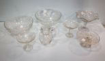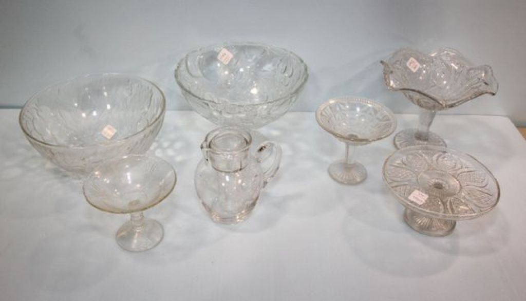 1099 Various Glass Fruit Bowls, Compotes & Etched Pitcher