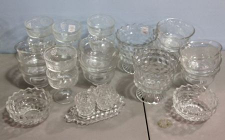 Fostoria pitcher, creamer, tray, bowls and other glass sherbets Fostoria pitcher, creamer, tray, bowls and other glass sherbets