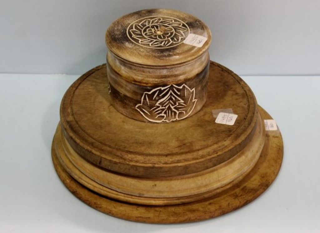 1148 Four Various Size Wood Stands & Carved Wood Round Box