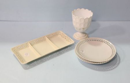 1220 Milk Glass Vase, Two Plates & Divided Dish