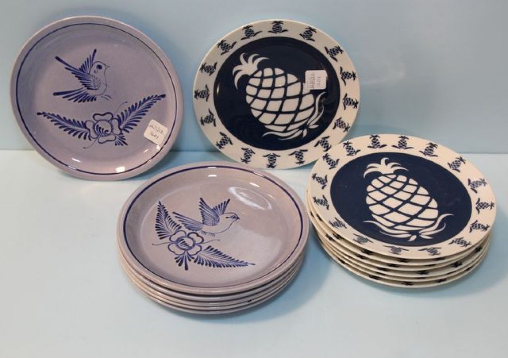 1231 Seven Cerzon Pineapple Plates & Six Hand Painted Mexican Plates