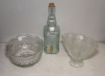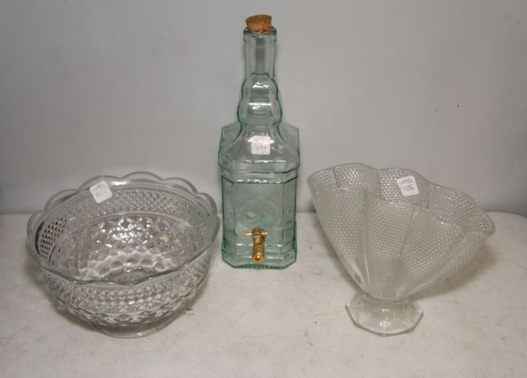 Glass fan vase, glass 10" dia. bowl and bottle with spiket 15" h. Glass fan vase, glass 10" dia. bowl and bottle with spiket 15" h.