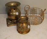 Wire Christmas basket, brass spittoon, small brass easel and brass 6" flower pot Wire Christmas basket, brass spittoon, small brass easel and brass 6" flower pot