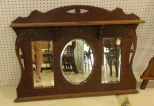 1343 Three Section Beveled Glass Oak Mirror