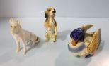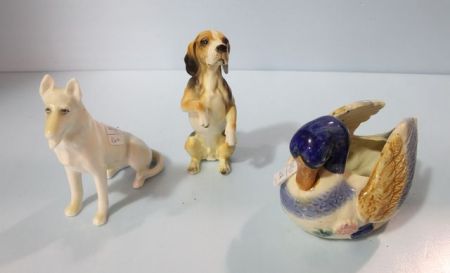 Porcelain German Shepherd 4 1/2"x 5 1/2", ceramic Japan hound dog 5" h. and Occupied Japan swan 6" w. Porcelain German Shepherd 4 1/2"x 5 1/2", ceramic Japan hound dog 5" h. and Occupied Japan swan 6" w.
