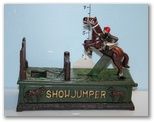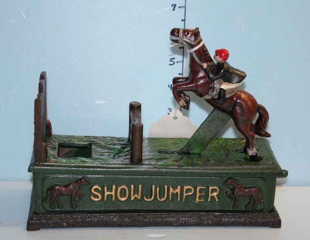 Reproduction Cast Iron Show Jumper Mechanical Bank; 7 1/2" h. Reproduction Cast Iron Show Jumper Mechanical Bank; 7 1/2" h.