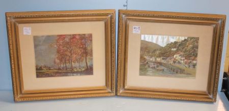 Two Small Gold Framed Prints, country scene and port city scene; 14 1/2" x 12" Two Small Gold Framed Prints, country scene and port city scene; 14 1/2" x 12"