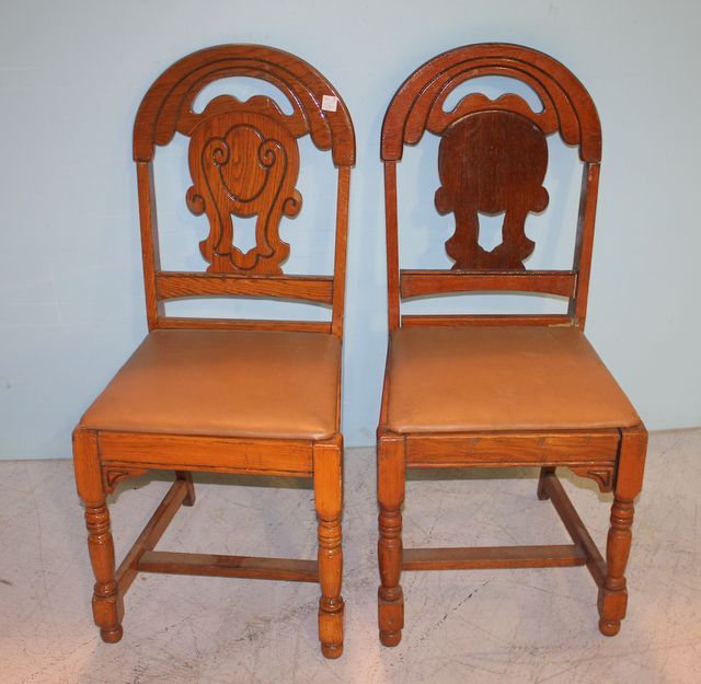 Pair of Oak Art Deco Chairs; 37" h. Pair of Oak Art Deco Chairs; 37" h.