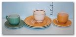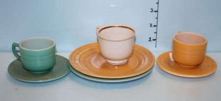 Miniature Green Cup and Saucer, Miniature Orange Cup and Saucer, and a Bavarian Demi-Cup Miniature Green Cup and Saucer, Miniature Orange Cup and Saucer, and a Bavarian Demi-Cup