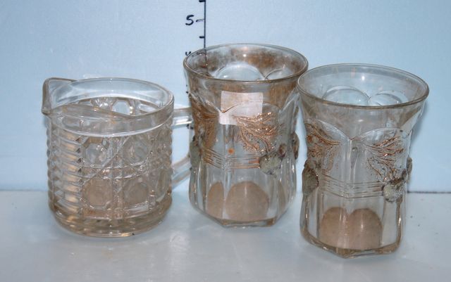 215 A Depression Glass Pitcher and Two Depression Glass Tumblers