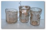 A Depression Glass Pitcher and Two Depression Glass Tumblers A Depression Glass Pitcher and Two Depression Glass Tumblers