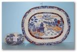 220 Ironstone Platter with Chinese Garden Scene and a Royal Staffordshire "Tonquin" Dinnerware Tray by Clarice Cliff