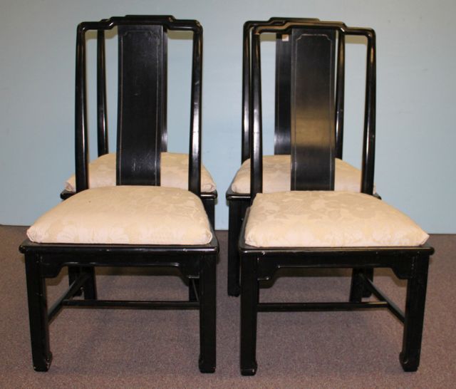 Set of Four Black Lacquer Side Chairs (Matches Lot # 0224); 21" w., 20" d., 41" h. Set of Four Black Lacquer Side Chairs (Matches Lot # 0224); 21" w., 20" d., 41" h.