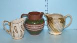 Two Sadler Cream Pitchers (3 1/2", 4") and an English Pottery Green and Brown Pitcher (4" h.) Two Sadler Cream Pitchers (3 1/2", 4") and an English Pottery Green and Brown Pitcher (4" h.)