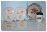 (8" dia.) Covered Mug, American Hotel, Amsterdam, Four Copenhagen Trivets, Piet Hein 1952, Copenhagen Denmark Plate with Fruit (8" dia.) (8" dia.) Covered Mug, American Hotel, Amsterdam, Four Copenhagen Trivets, Piet Hein 1952, Copenhagen Denmark Plate with Fruit (8" dia.)