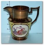 Copper Luster Pitcher of Lady and Child; 6" h. Copper Luster Pitcher of Lady and Child; 6" h.