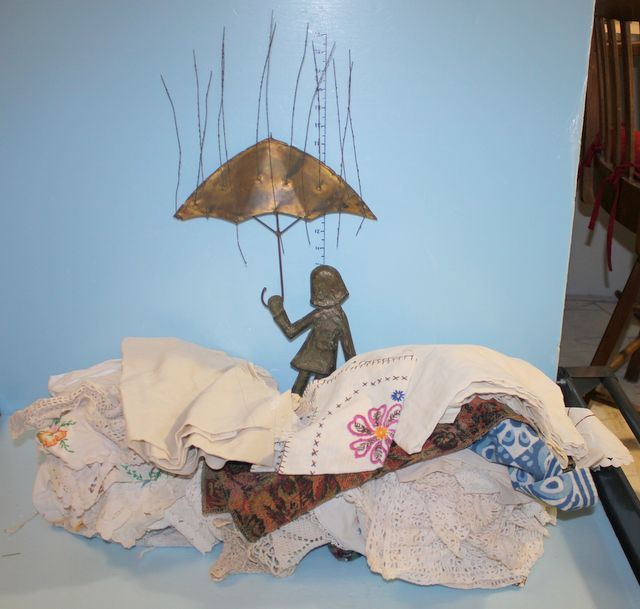 Group of Dollars and Metal Morton Salt Lady with Umbrella Group of Dollars and Metal Morton Salt Lady with Umbrella