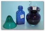 288 Small Purple Vase with Ground Bottom, a Smoke Blue Milk of Magnesia Bottle, and a Turquoise Bell