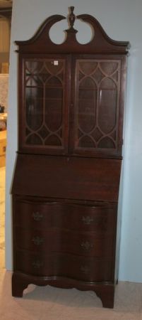 Mahogany Bracket Foot Desk with Bookcase Top; 79" h., 29" w., 17" d. Mahogany Bracket Foot Desk with Bookcase Top; 79" h., 29" w., 17" d.