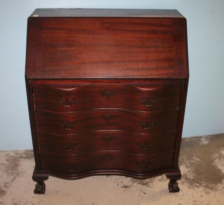 Maddox Mahogany Ball-n-Claw Dropfront Desk; 41 1/2" h., 33 1/2" w., 18" d. Maddox Mahogany Ball-n-Claw Dropfront Desk; 41 1/2" h., 33 1/2" w., 18" d.