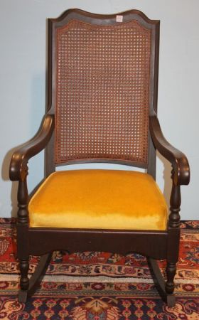 Mahogany Cane Back Arm Rocker; 39 1/2" h. Mahogany Cane Back Arm Rocker; 39 1/2" h.