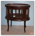 Mahogany Oval Chocolate Cabinet with Lift Top Tray; 30" h., 28" w., 18" d. Mahogany Oval Chocolate Cabinet with Lift Top Tray; 30" h., 28" w., 18" d.