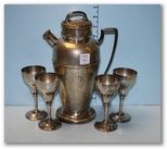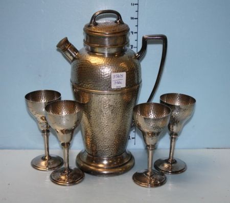 EPN's Hand Hammered Nickel Silver Pitcher (12" h.) and Four EPN's Goblets EPN's Hand Hammered Nickel Silver Pitcher (12" h.) and Four EPN's Goblets