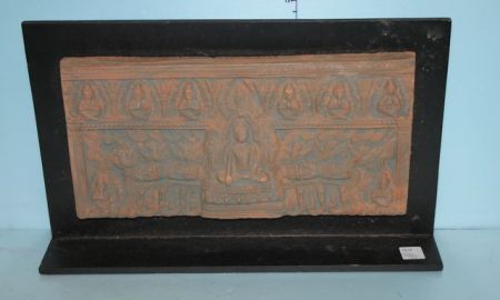 Terra Cotta Tile Carving on Wood Stand Terra Cotta Tile Carving on Wood Stand