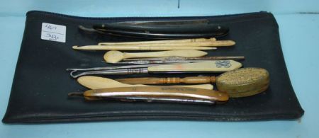 467 Collection of Bone Dresser Set, Two Straight Razors and a Dr. Morse Pill Box
