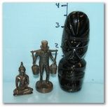 Hummel-Hummel Hamburg Figurine (2 1/2" h.), a Brass Buddha, and a Glass Totem Pole Figurine Hummel-Hummel Hamburg Figurine (2 1/2" h.), a Brass Buddha, and a Glass Totem Pole Figurine