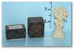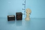 Two Small Word Block Stamps and a Resin Figurine Two Small Word Block Stamps and a Resin Figurine