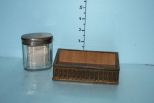 Brass Box (No Lid); 5 1/4" w., and a Glass Piece to a 19th Century Toiletry Set (Sheffield lid) Brass Box (No Lid); 5 1/4" w., and a Glass Piece to a 19th Century Toiletry Set (Sheffield lid)