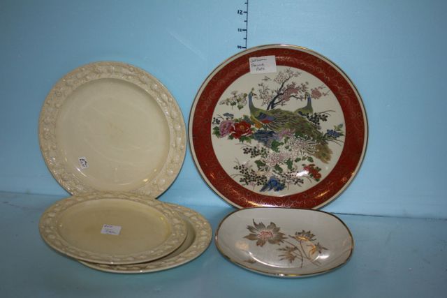 Three Tiltlanware Plates (8" dia.), Bavarian Dish, Satsuma Japan Peacock Plate (10 1/2" dia.) Three Tiltlanware Plates (8" dia.), Bavarian Dish, Satsuma Japan Peacock Plate (10 1/2" dia.)