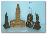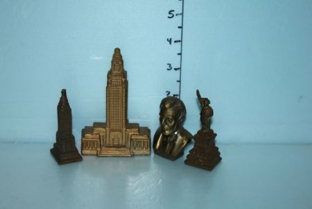 Group of Four Miniature Brass Figurines; buildings and Lincoln Group of Four Miniature Brass Figurines; buildings and Lincoln