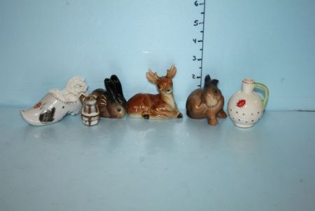 Group of Porcelain Miniatures including two rabbits, deer, shoe, and a windmill Group of Porcelain Miniatures including two rabbits, deer, shoe, and a windmill
