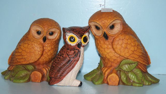 Three Plastic Owls (chip on one ear) Three Plastic Owls (chip on one ear)
