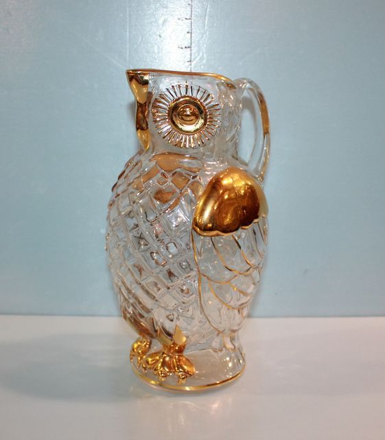 696 Crystal Owl Pitcher with Gold Detailing