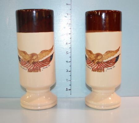 Pair of "Eagle Spirit of '76" McCoy Floraline Vases; 9" h. Pair of "Eagle Spirit of '76" McCoy Floraline Vases; 9" h.
