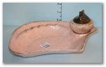 California Original Pottery Pink with Gold Specks Ashtray and Lighter #316; 10" w., 8 1/2" d., 3 1/2" h. California Original Pottery Pink with Gold Specks Ashtray and Lighter #316; 10" w., 8 1/2" d., 3 1/2" h.