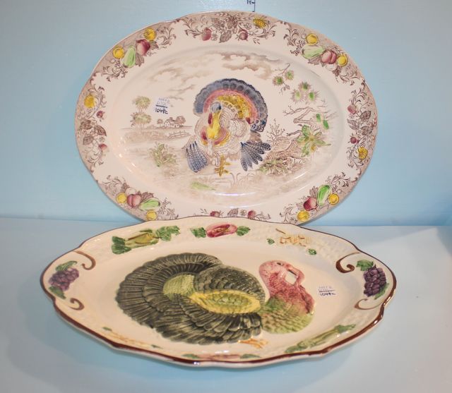 Large Oval Pottery Turkey Platter (18" w., 14 1/2" l.) and a Large Oval China Turkey Platter (18" w., 14" l.) Large Oval Pottery Turkey Platter (18" w., 14 1/2" l.) and a Large Oval China Turkey Platter (18" w., 14" l.)