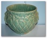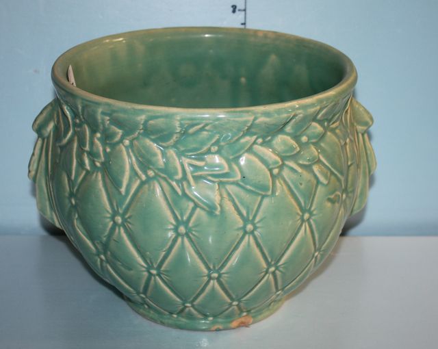 Green McCoy Pottery Planter, marked on bottom, small chip at base; 7 1/2" dia. Green McCoy Pottery Planter, marked on bottom, small chip at base; 7 1/2" dia.
