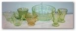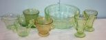 Ten Pieces of Depression Glass; One Gold and Ten Green Ten Pieces of Depression Glass; One Gold and Ten Green
