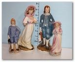 Two Pairs of Lady and Gent Figurines; one pair of Lefton China hand painted "Pinkie" and "Blue Boy" limited editions 8 1/4" h., one pair of two unmarked pinkie and blue boy figurines 6" h. Two Pairs of Lady and Gent Figurines; one pair of Lefton China hand painted "Pinkie" and "Blue Boy" limited editions 8 1/4" h., one pair of two unmarked pinkie and blue boy figurines 6" h.