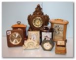 Nine Variously Styled Clocks; desk/mantel clocks, smallest - 3" h., and largest-11 3/4" h. Nine Variously Styled Clocks; desk/mantel clocks, smallest - 3" h., and largest-11 3/4" h.