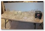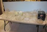Large Group of Clear Glass Crystal; including compotes, vases, goblets, pitchers, trinket boxes, and other items, over one hundred pieces. Large Group of Clear Glass Crystal; including compotes, vases, goblets, pitchers, trinket boxes, and other items, over one hundred pieces.